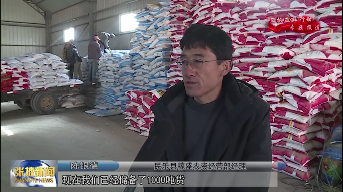 民乐县稼盛农资经营部经理 陈银德:“现在我们已经储备了1000吨货,每天能出货50吨左右,有订单需求的我们就送货上门。”