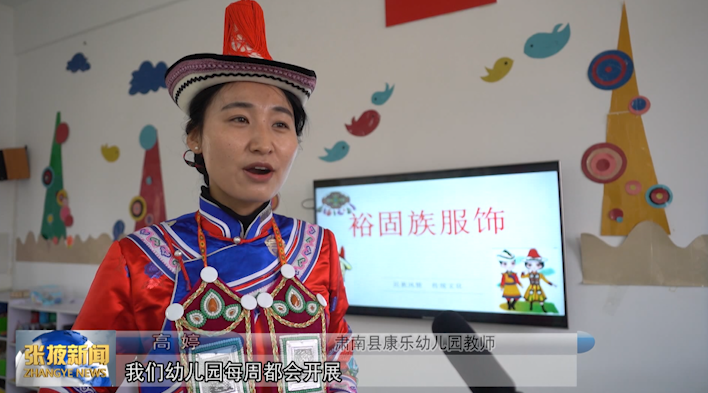肃南县康乐幼儿园教师 高婷:“我们幼儿园每周都会开展非遗文化保护课程,在课程中让幼儿来了解民族文化,让非物质文化遗产保护在校园内得到延续。”