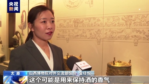 山西博物院对外交流部馆员 金佳悦:纹饰其实是非常典型的像草原风格的气息,但是它的造型又非常的浑圆厚实,又是非常典型的中原器型的风格。这件器物铸造年代是在西汉末年,正是我们历史上一个民族大融合的时期。在它的下边可能还配有一个盛放有木炭的托盘,一起来配套使用,来加热酒。它上面有一个非常厚重的盖子,这个可能是用来保持酒的香气和防止酒精挥发的,所以联想到我们今天在进行清明祭祖的时候,大家也会用酒来表达这样的一种追思遥寄。(总台记者 张立雷 赵颖洁)