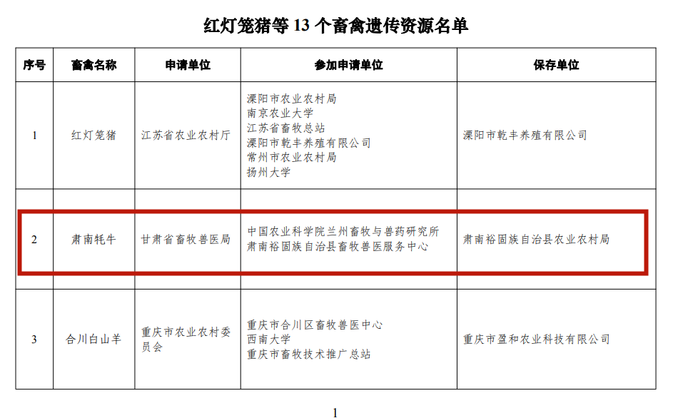 日前,农业农村部发布畜禽新品种配套系审定和畜禽遗传资源鉴定结果,由上级部门单位、相关科研院所及肃南县等团队发掘并保护的地方畜禽资源“肃南牦牛”通过国家畜禽遗传资源委员会鉴定,公示后将正式列入《国家畜禽遗传资源品种名录》,成为肃南县首个畜禽国家遗传资源。这也是第三轮目前通过国家畜禽遗传资源委员会鉴定的唯一的牦牛遗传资源。