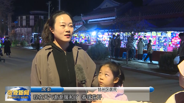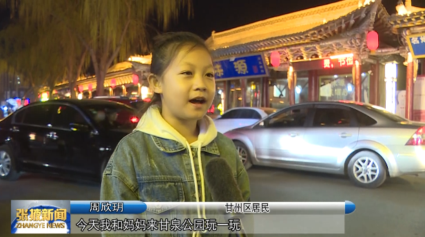 甘州区居民 周欣玥:“今天我和妈妈来甘泉公园玩,这里有很多人也很热闹,也有很多特色小吃,我非常开心。 ”