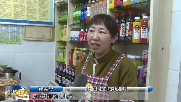 甘州区福堂阁麻辣烫老板 孙美玲:“现在天气回暖了,周末逛街的人也多,我们的生意也越来越好了。”