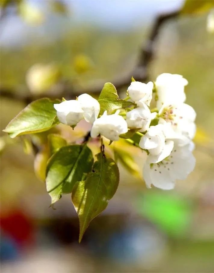 花朵需要绿叶的陪衬,因为绿叶的绿,梨花的白更白,有意境有炫耀有故事。