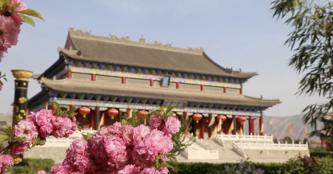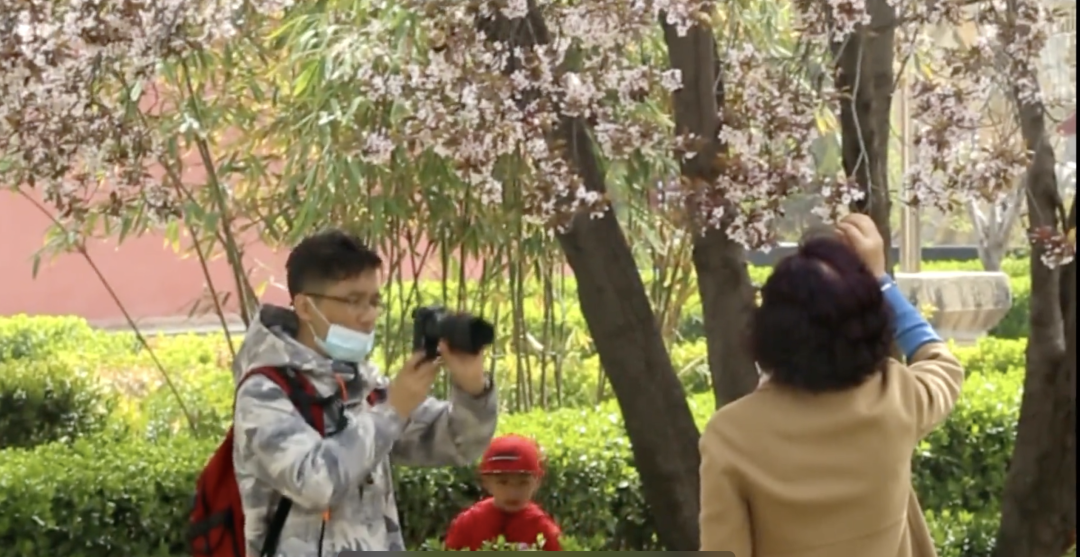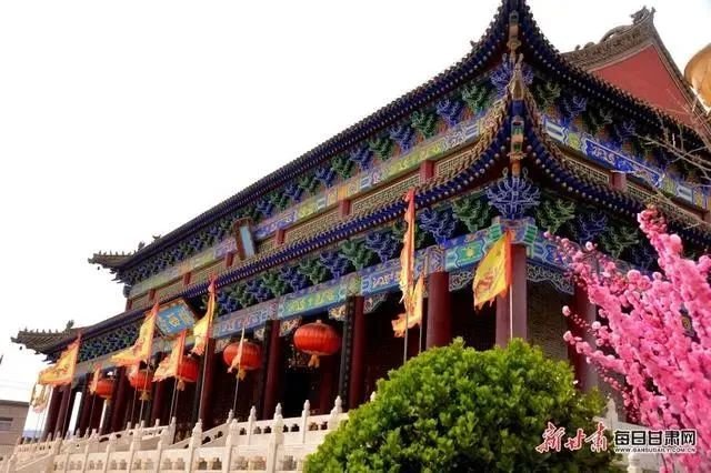 芳菲四月,陇西李家龙宫内,杏花如雪,春山如黛,桃花、迎春花、丁香花、杏花、连翘、樱桃花、海棠等各种花卉在春风的吹拂下悄然绽放,与古建筑群相映成趣,吸引市民拍照游玩。