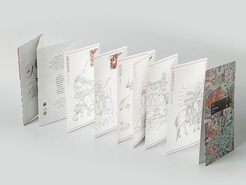 《敦煌如是绘》中还特别设计“敦煌九样”别册。“看一百遍不如自己亲手画一遍”。九个敦煌壁画中具有代表性的主题,经过专业画师的提炼线描,形成册子,以邀请更多爱好者参与到壁画临摹中来。这是一个接触敦煌最真切的方式。