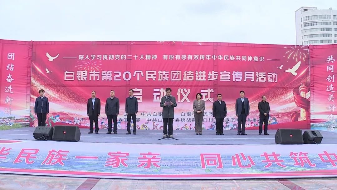 5月9日上午,白银市第20个民族团结进步宣传月活动启动仪式举行,活动主题为“深入学习宣传贯彻党的二十大精神,有形有感有效铸牢中华民族共同体意识”。市委副书记、市委统战部部长惠强讲话并宣布活动启动。