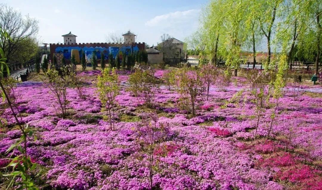 义渠百花园是集自然风情观光、文化娱乐休闲、户外婚纱摄影为一体的综合性乡村旅游景点。 进入五月,位于百花园芝樱花将迎来绽放季,园内千亩芝樱花海争奇斗艳、多项活动精彩纷呈,芝樱花虽然看起来小巧单薄,但因为紧密地覆盖着地表,连片开放时,朵朵小花形成大片花被犹如粉色的海洋把大地渲染得缤纷美丽。
