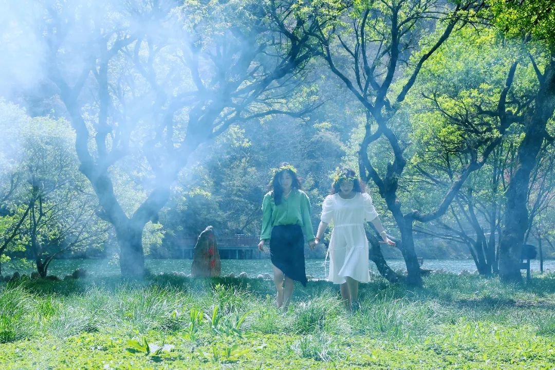 游在梅园是一种心情。约三五知己徜徉在淡淡的茶香里,累了,随便坐在哪个河滩的石头上,谈论着不咸不淡的话题,看山边的云,听树上的鸟叫,看脚边刚出生的鱼儿,小心翼翼地试探着时不时碰碰脚踝,好不惬意!