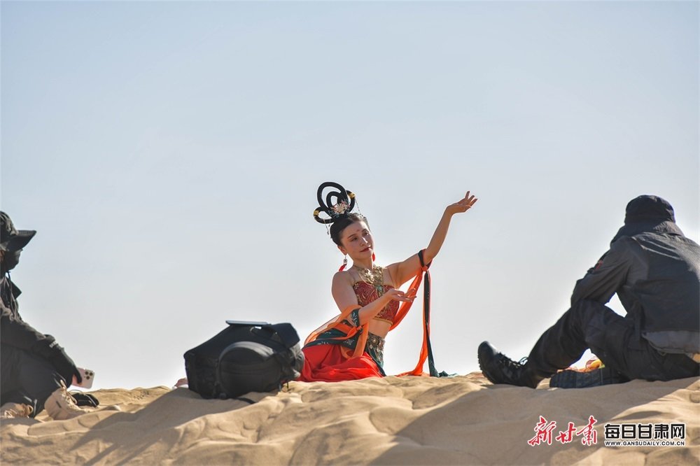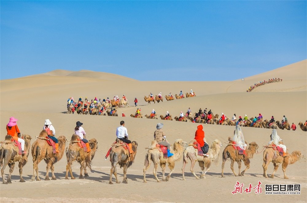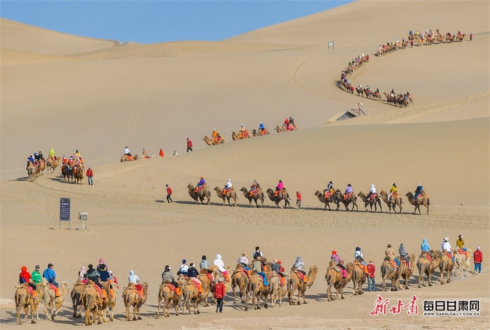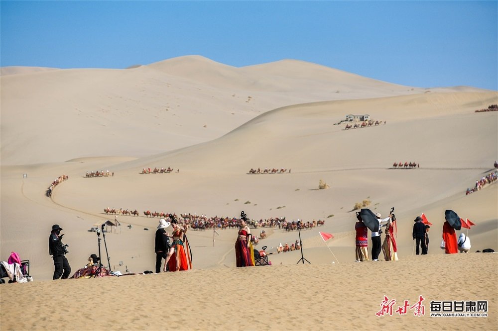 原标题:敦煌初夏美如画 驼队如龙舞鸣沙