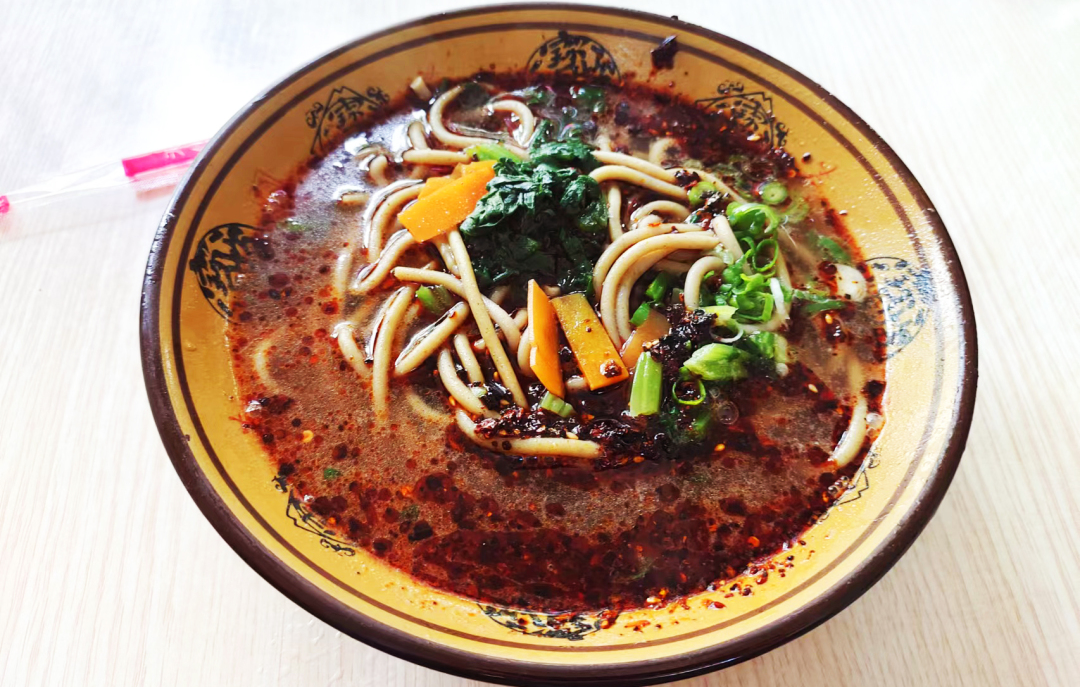 早年挑在担子上售卖而得名担担面,大多数陇西人的一天是从一碗热气腾腾的担担面开始的。数次的揉、扯让面粉生出了韧劲,风味独特的糊汤驱走清晨的寒凉,如果这天活动量大或者行程紧密,一碗担担面再来个卤肉+鸡蛋,折腾到中午肚里不慌。