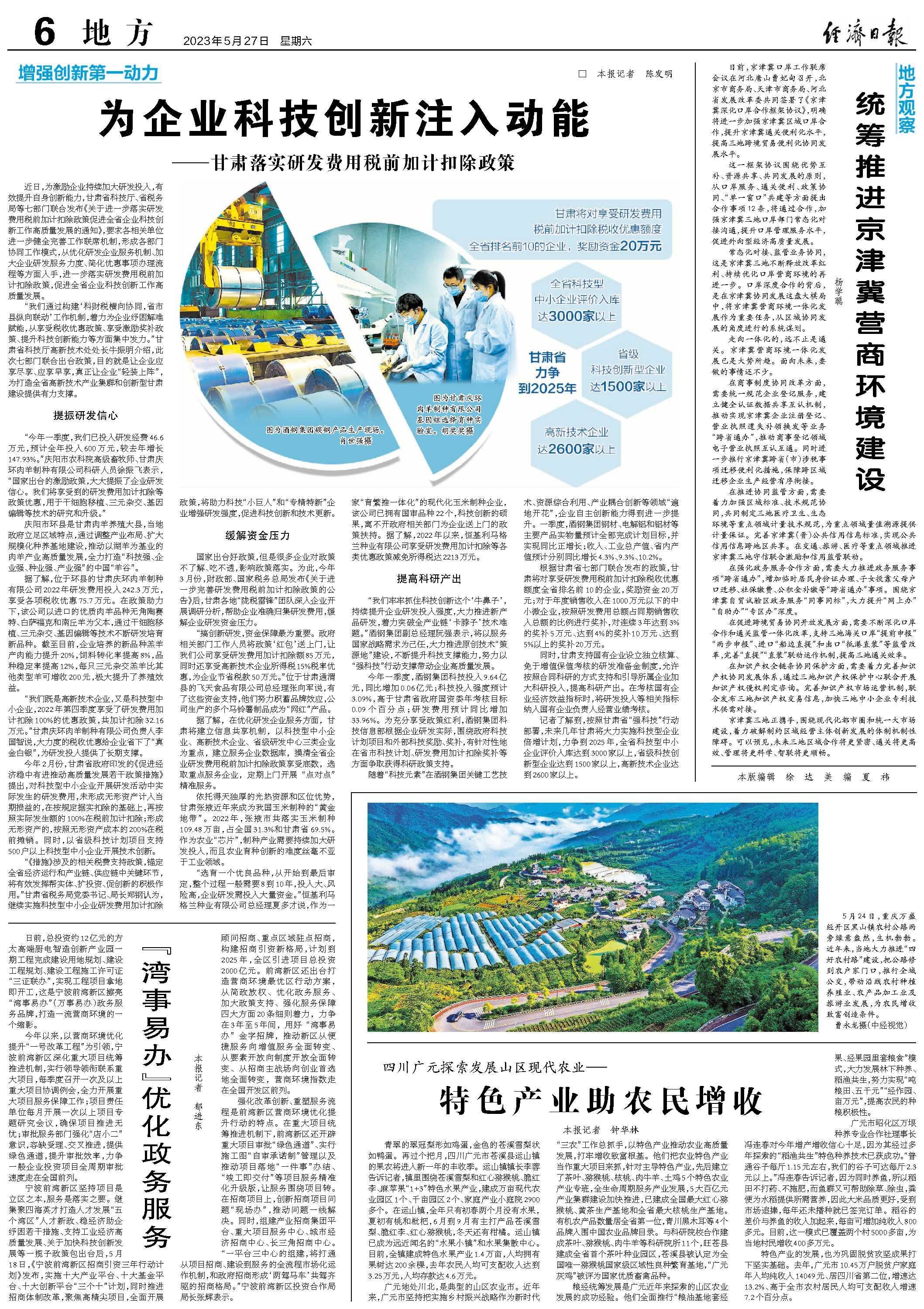 “我们既是高新技术企业,又是科技型中小企业,2022年第四季度享受了研发费用加计扣除100%的优惠政策,共加计扣除32.16万元。”甘肃庆环肉羊制种有限公司负责人李国智说,大力度的税收优惠给企业省下了“真金白银”,为研发投入提供了长期支撑。