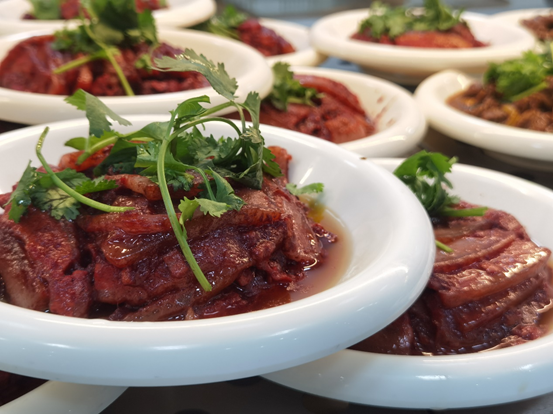 “你尝尝牛肉面,这是正宗的兰州味道”、“下次去兰州,你可以试试灰豆子,有一股巧克力味!”张帆一道菜一道菜地向朋友介绍着。