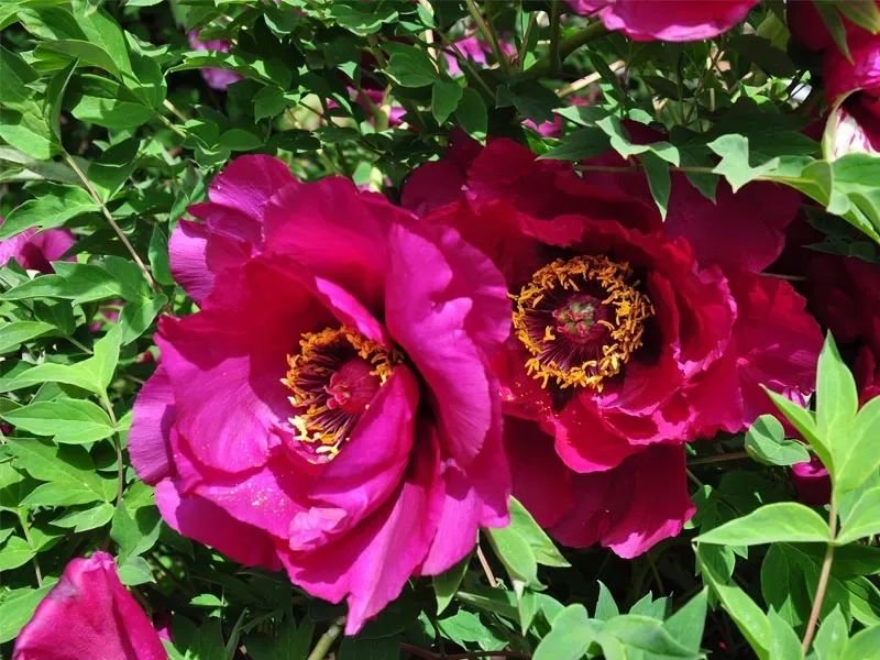 最令人钦佩称奇的是那三千余棵已经生长了百年以上的牡丹树,躯干虽写满了沧桑,却依然枝繁叶茂,花团锦簇,仙鹤般引颈高歌,笑迎八方。千百年来,种植牡丹、培育牡丹、观赏牡丹在临洮蔚然成风,紫斑牡丹更因成为祖国百花园中一枝光彩照人的奇葩异卉而闻名世界。