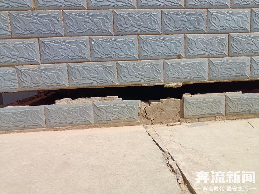 5月12日,兰州市民赵先生向奔流新闻“记者帮”热线0931-8159555反映,兰州市安宁区十里店永丰嘉苑2号楼、4号楼楼后散水及地面下沉,外面墙体出现裂缝,有些裂缝宽达10厘米。下沉现象已有两三年了,至今无人维修。