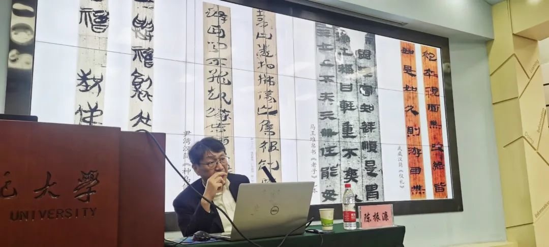 5月27日下午15时,中国文联副主席、西泠印社副社长兼秘书长陈振濂教授受邀在西北师范大学教师发展中心举办《简牍书法创作的“审美居先”定位与艺术表现的可能性》学术报告。
