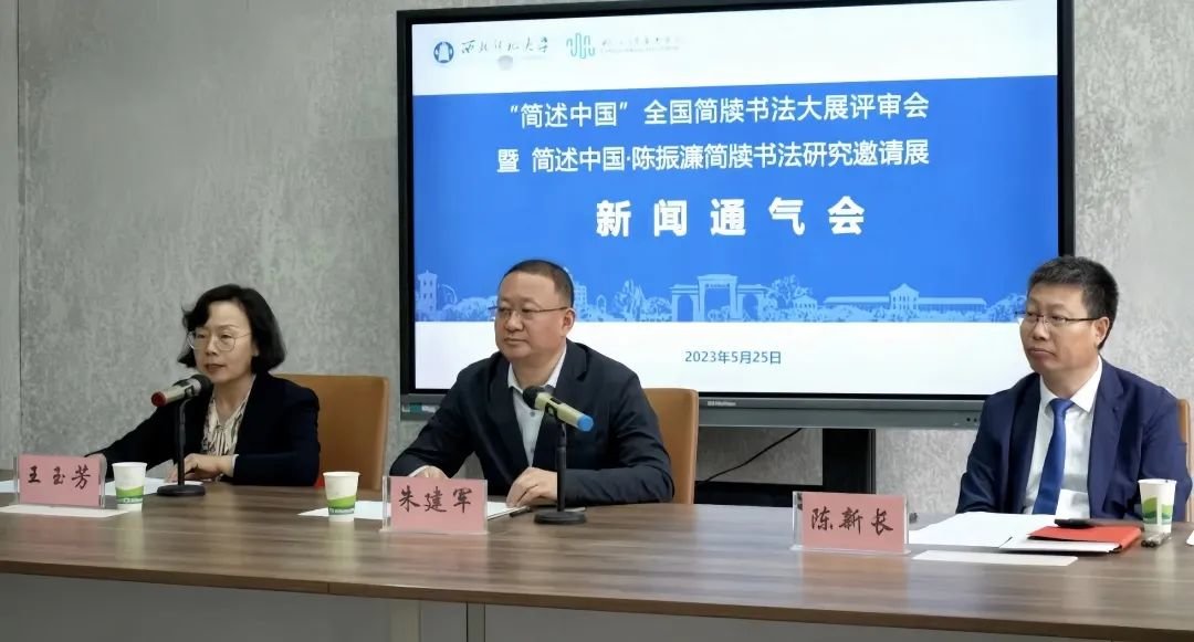 2023年5月25日至28日,由甘肃简牍博物馆、西北师范大学简牍研究院、甘肃省书法家协会共同主办,西北师范大学美术学院、北京一得阁墨业有限责任公司承办的“简述中国”全国简牍书法大展评审会、陈振濂简牍书法研究邀请展、陈振濂学术报告《简牍书法创作的“审美居先”定位与艺术表现的可能性》等学术活动在西北师范大学举行。