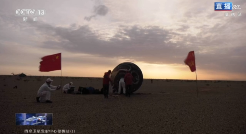 央视新闻客户端:神舟十五号载人飞船返回舱成功着陆 神舟十五号载人飞行任务取得圆满成功