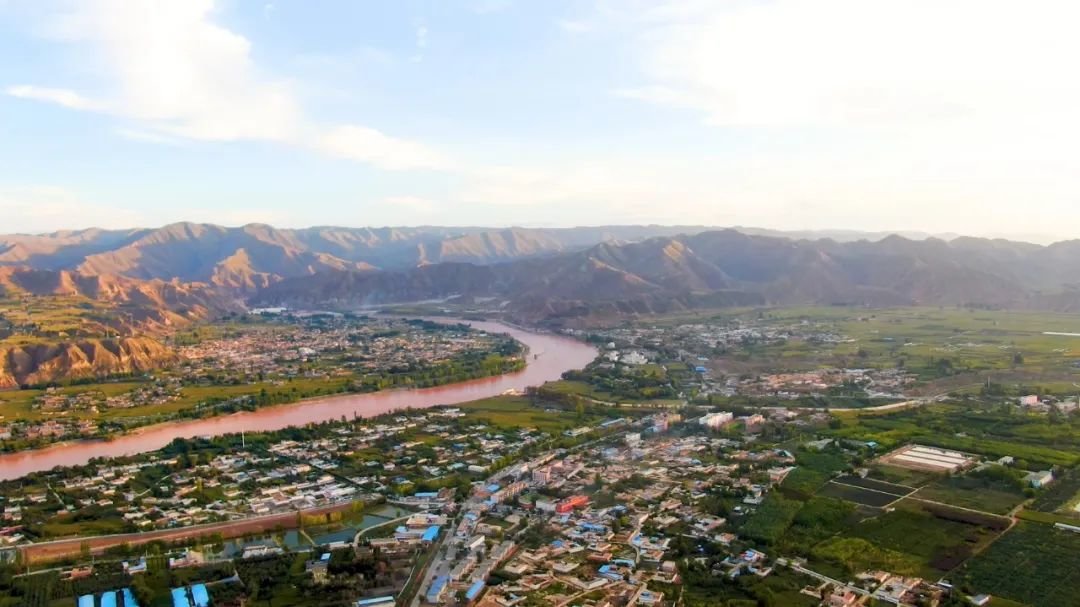 行至山顶、风光无限,显现出群山朝拜的宏伟气象。山顶可以俯瞰四龙镇全貌,远处是黄河如玉带飘过,山脚下高铁穿山而过,一片欣欣向荣的景象,让人忍不住想去村里看看。