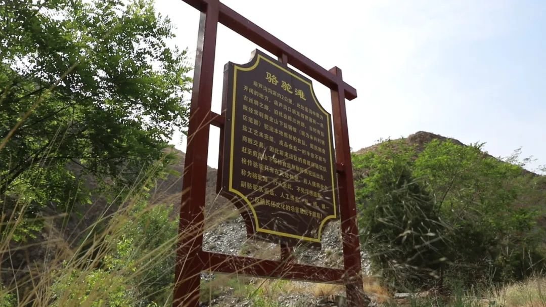 “骆驼滩”是葫芦沟最为开阔的地方,古丝绸之路从这里通过,相传运盐的驼队在此处休憩,后人便将此处称为骆驼滩。