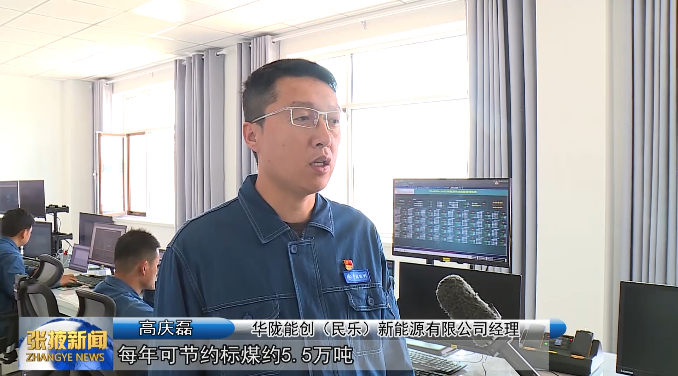 华陇能创(民乐)新能源有限公司经理 高庆磊:“该项目建成运行后,每年可节约标煤约5.5万吨,减少大气污染物二氧化碳约15万吨,二氧化硫 约0.028万吨,对减少环境污染具有一定的促进作用。”