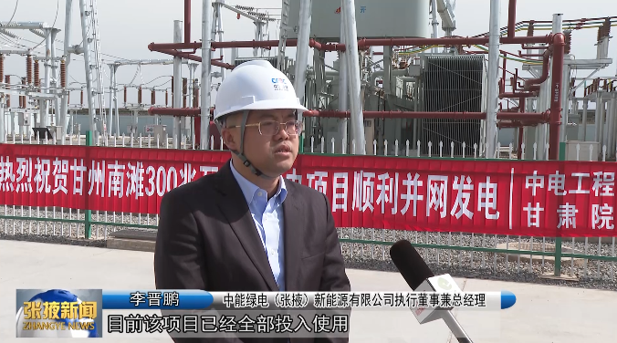 中能绿电(张掖)新能源有限公司执行董事兼总经理 李晋鹏 :“目前该项目已经全部投入使用,每年可发电5.4亿度,为当地居民提供了纯净、可靠的电力。”
