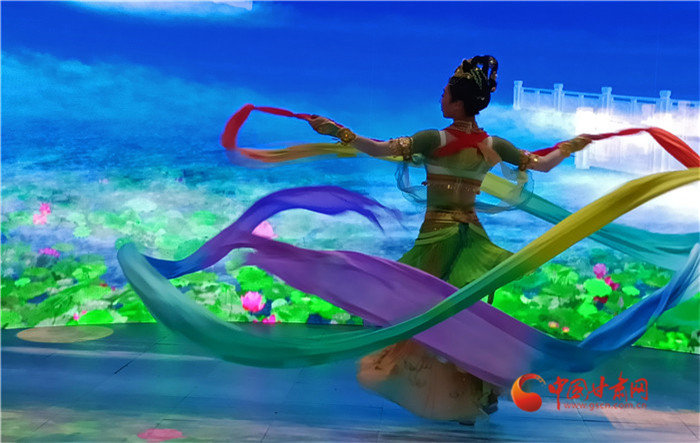 如意甘肃馆选择“以鹿王本生图”中的绿色作为设计的主色调,将敦煌元素镶嵌在展馆各个角落。特别是门口的展演舞台,经典舞剧《丝路花雨》展演的反弹琵琶、敦煌伎乐天等将观众带入了有声有色的敦煌,成为如意甘肃馆的一大吸睛之处。