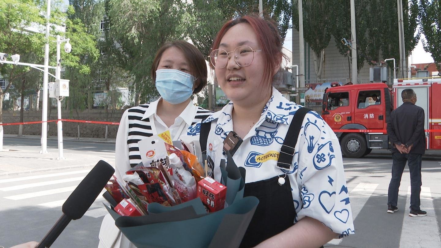 考生家长:今天和妈妈过来接我的弟弟,弟弟平时成绩还不错,花是我和妈妈一起准备的,因为平时弟弟爱吃零食,所以妈妈想着高考结束,也是步入一个新的阶段,专门为他准备。