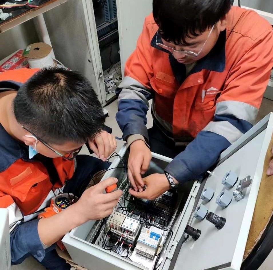 “先对天车进行断电、验电、挂牌、上锁,派专人监护,确认安全之后,对已损坏的限位开关进行拆除作业。拆除后,将裸露的线头进行包扎,再安装新的限位开关,安装时注意限位开关的引脚位置然后接线,最后对天车合闸,进行测试。”在金川集团龙首矿西二制浆站智能天车现场,记者见到充填工区辅助维修班电工班班长赵洪涛正手把手教青年员工进行更换天车停止限位的操作要领及安全注意事项。