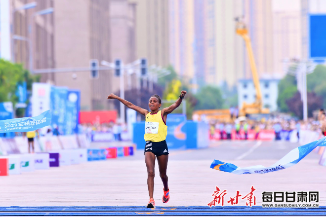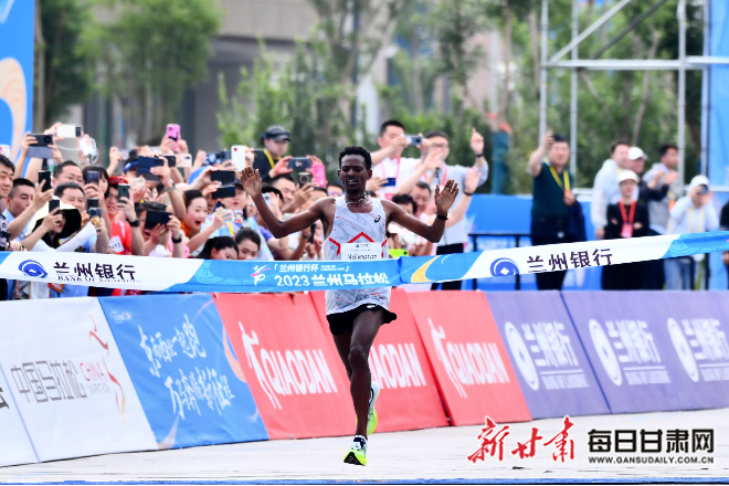 “本次兰马的男子全程冠军正在进行最后冲刺!来,我们一起为他们加油!”在终点群众的呐喊声中,来自埃塞俄比亚的参赛选手海勒马里亚姆·基罗斯冲过终点线,以2小时08分57秒的成绩勇夺男子组冠军,打破“兰马”历史纪录。令人惊喜的是,女子马拉松第一、二、三名均打破“兰马”赛会纪录,埃塞俄比亚选手莱特布兰·海莱·格布雷斯拉萨以2小时29分09秒的成绩摘得女子组桂冠。
