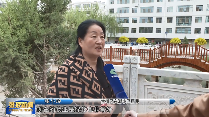 甘州区东湖小区居民 张小玲:“现在的物业绿化做得好,环境也非常好,像小区、家里出现屋顶漏水、水管坏了,物业都能及时给我们解决。”