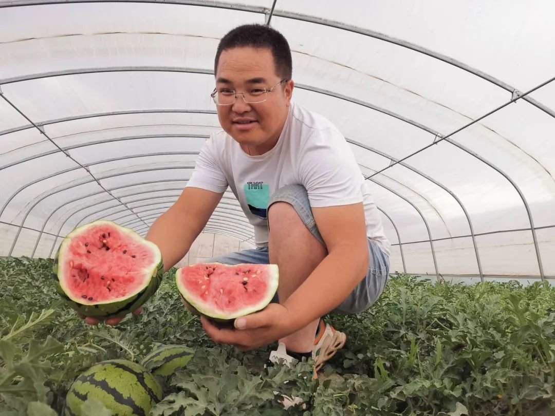 “咱们这个西瓜在种植时,考虑到市场行情,打好时间差,现在每个棚里的西瓜陆续上市了,这样就能卖个好价钱。现在是头茬西瓜,平均单个西瓜的重量6到8斤左右。目前订单也比较多,预计基地今年西瓜产量达50万斤以上。”