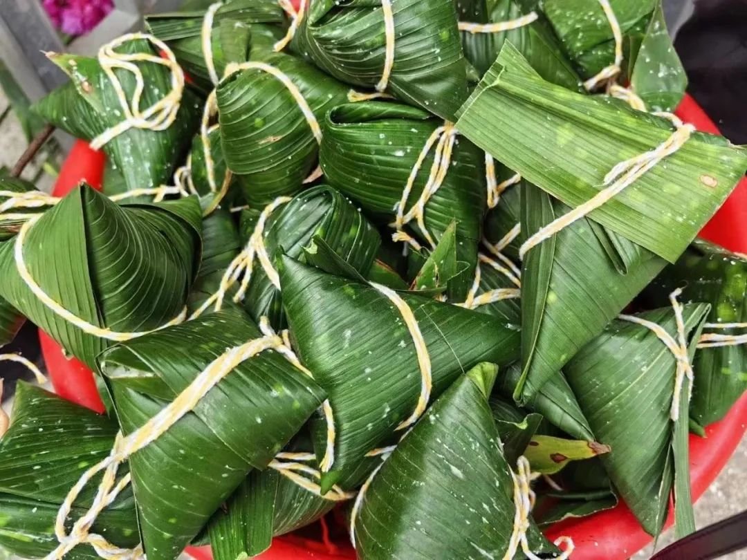 用竹叶包裹大枣、糯米、肉类或豆沙等馅料