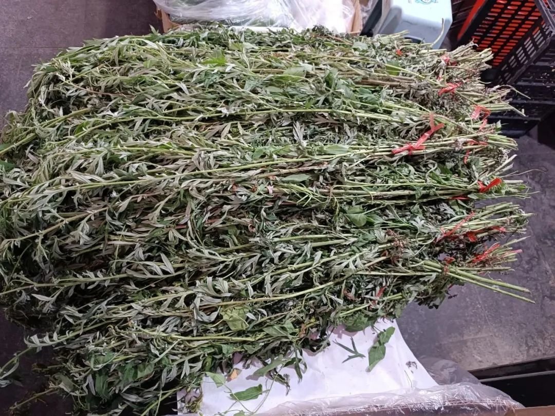 用红绳扎好的一捆捆艾草,远远就能闻到独特的清香。摊主魏女士 说艾草是一种特别好的药草,尤其是野生的更好,干透了的艾草还可以熬水泡脚,祛湿气很管用。端午节家门口挂艾草,寓意出门见艾(爱)。