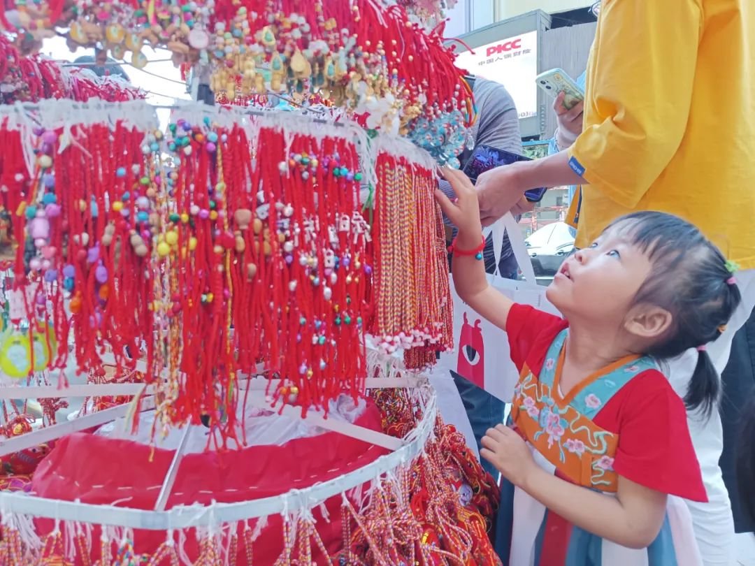 在端午这天给大人和小孩戴在手腕和脚腕,有驱毒驱虫的寓意