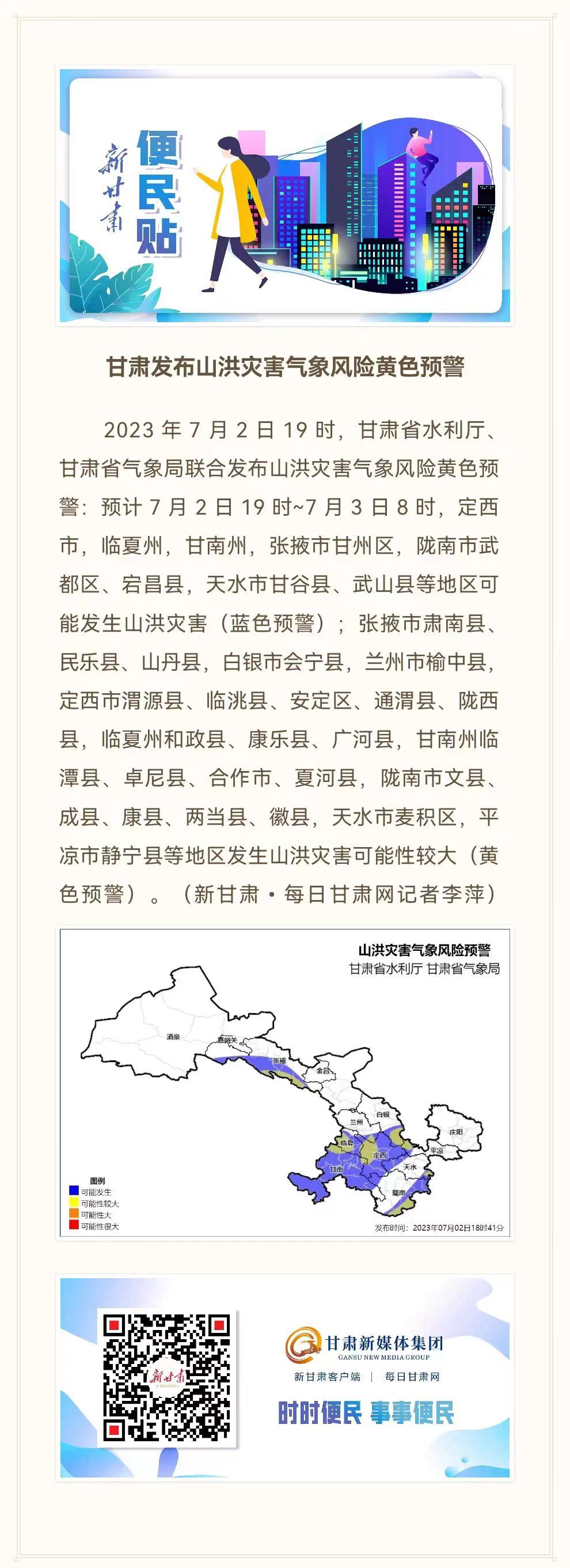 新甘肃:【新甘肃便民贴】甘肃发布山洪灾害气象风险黄色预警