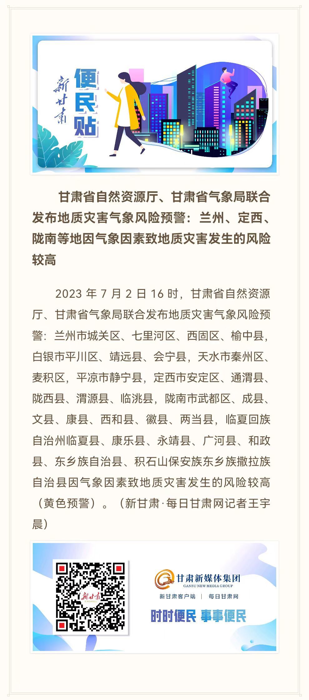 新甘肃:【新甘肃便民贴】兰州、定西、陇南等地因气象因素致地质灾害发生的风险较高