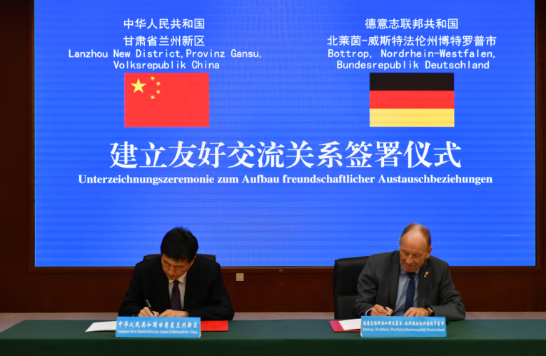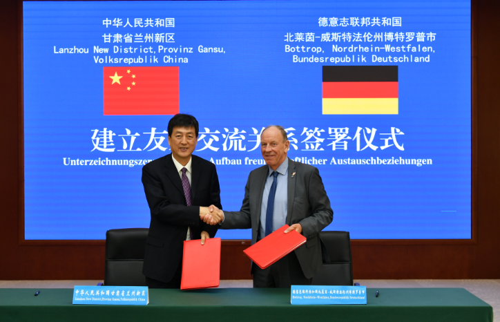 新甘肃客户端讯(新甘肃·兰州新区报 记者 唐学仁)7月7日上午,兰州新区党工委副书记、管委会主任李东新会见了德国北威州博特罗普市市长贝恩德·蒂施勒一行,并共同签订建立友好关系的协议。