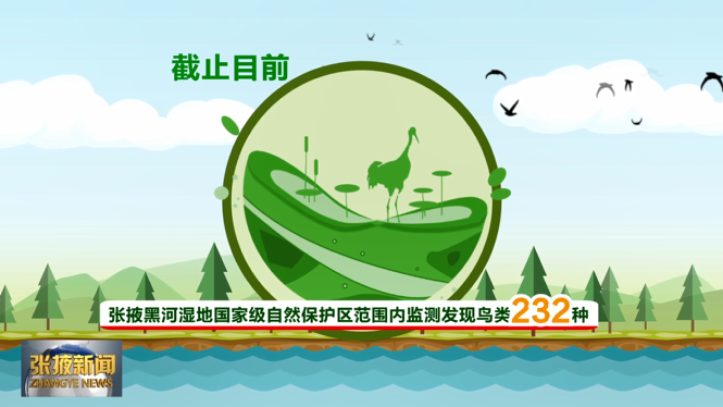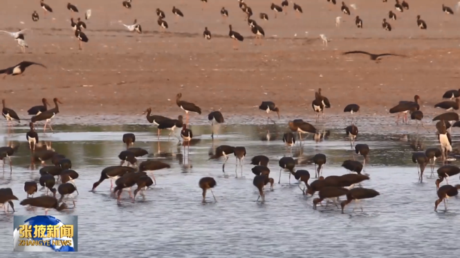 截至目前,张掖黑河湿地国家级自然保护区范围内监测发现鸟类232种,其中有黑鹳、大天鹅、白琵鹭等国家重点保护鸟类55种,而黑鹳监测到最大种群数量达到627只。