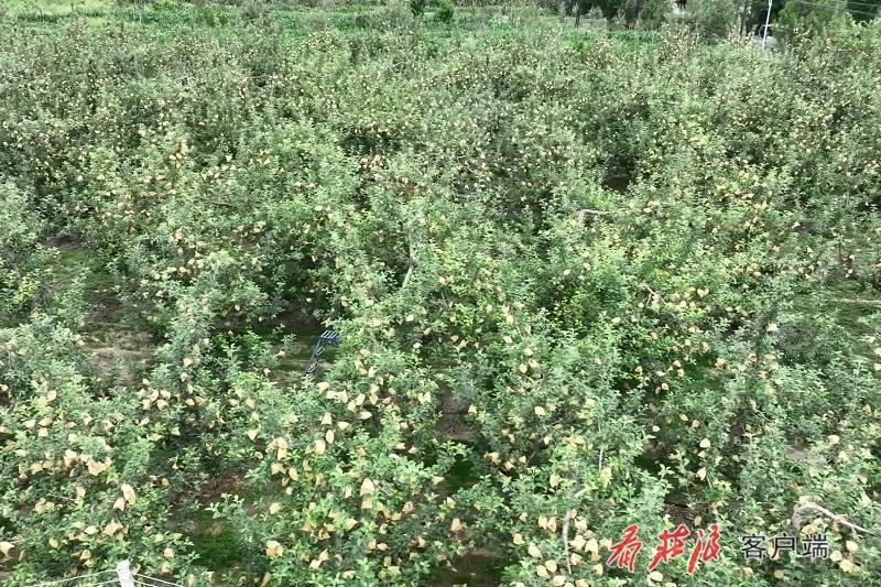 在朱店镇中街村的果园里,果农朱亮安正忙着开展疏果、剪枝、除草等管护工作。朱亮安是务果三十年的老果农,果园收入是他一家的主要经济来源。为了让果子质量更好、收入更高,他对果园管护格外上心,不断学习果树精细化管理新技术并运用到果园管理当中,在今年极端反常的天气下,朱亮安的果园经受住了恶劣天气的影响,依然丰收在望。