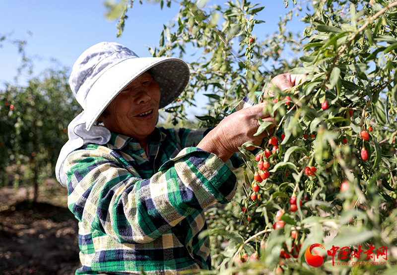 “我家就在附近,摘枸杞也比较轻松,每年枸杞成熟时我都来摘枸杞,这里的枸杞果子大,一天下来能挣个200元左右,既挣了钱还能照顾家。”村民刘建荣一边摘枸杞一边说道。