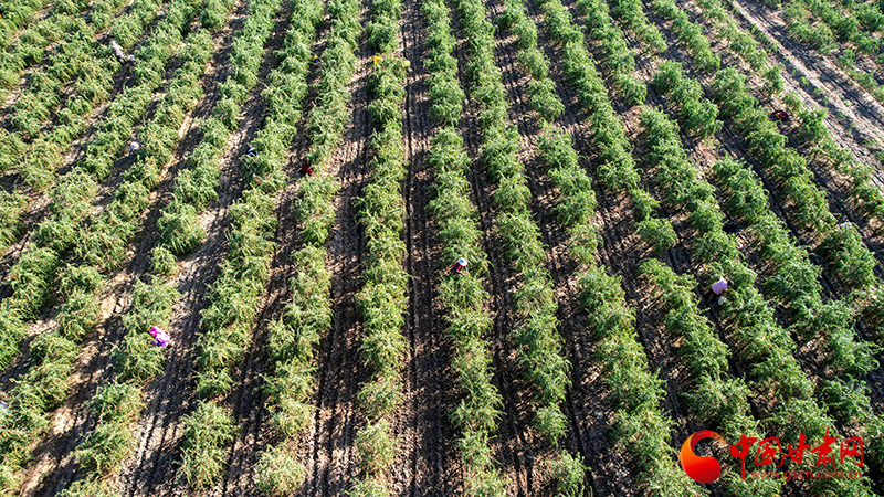 一眼望不到边的枸杞种植基地里,采摘工们穿梭在田间地头,熟练地抓住枸杞枝条,快速摘取果实,不一会儿工夫,脚边的空篮已经铺上了厚厚一层。