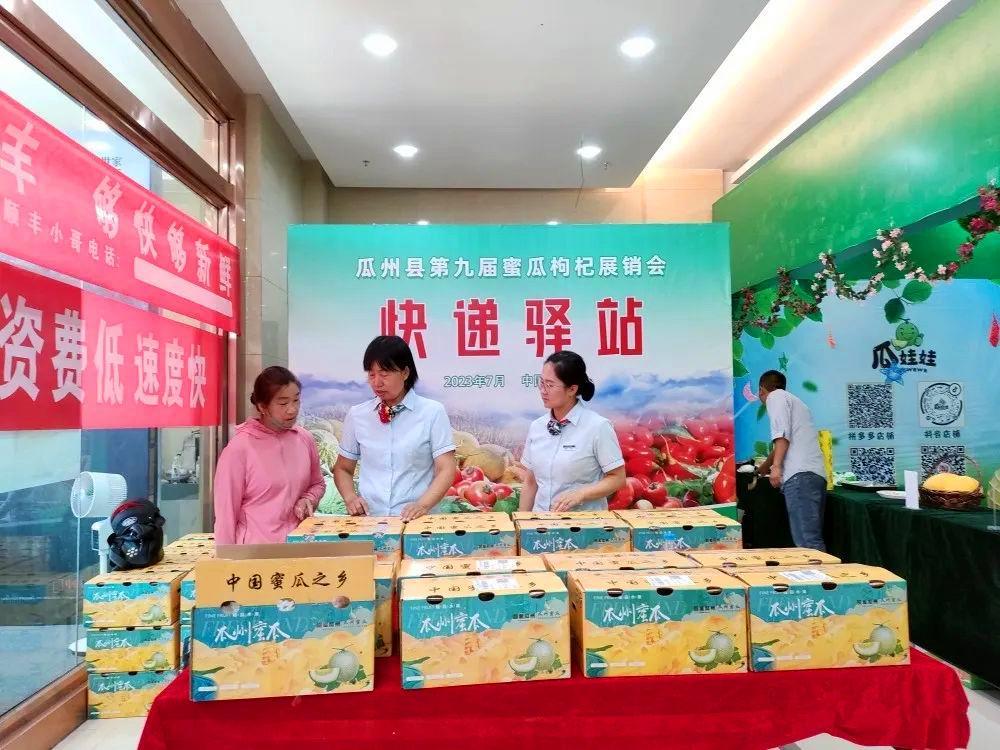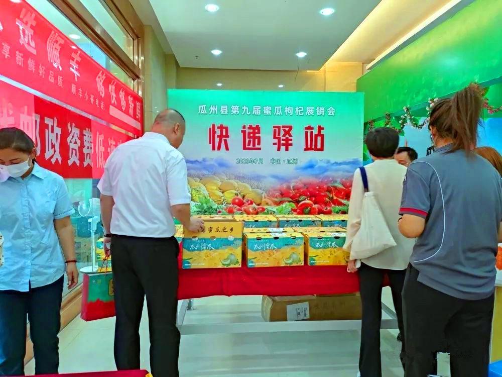 七月的瓜州,因蜜瓜枸杞而生机无限。在瓜州县第九届蜜瓜枸杞展销会上,由瓜州县邮政业安全发展中心设置的“快递驿站”以更加方便快捷的方式,现场为消费者提供寄递服务,助力瓜州蜜瓜远销全国各地。