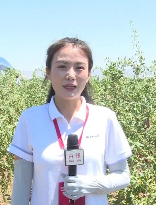 “当我踏入这片果园时,一望无际的红色滚滚而来,为七月缀满了丰收的喜悦。我现在所在的位置是白银市靖远县五合镇的枸杞产业园,在我身后杞农们正在忙着采摘丰收的枸杞。”