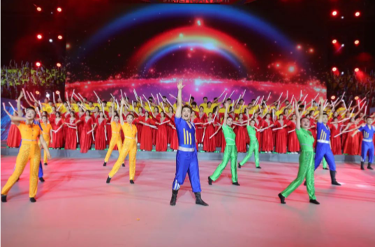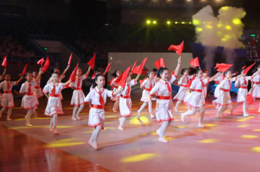 金川体育馆内灯光璀璨、音乐环绕,文艺演出精彩上演。整场演出分《生命之舞》《青春之歌》《腾飞之翼》《梦想之光》4个篇章,杂技《源起》及舞蹈《绽放》展现了60多年来,历代金川人在战胜困难、创造辉煌中孕育形成的金川文化;歌舞合唱《幸福欢歌》与男子群舞《最深处》将现场观众的激情与活力点燃;运动集锦《拥抱阳光》搭配流行舞《金川节奏》将文艺表演推向高潮;歌舞《让心相聚》为运动会开幕式画上圆满句号。