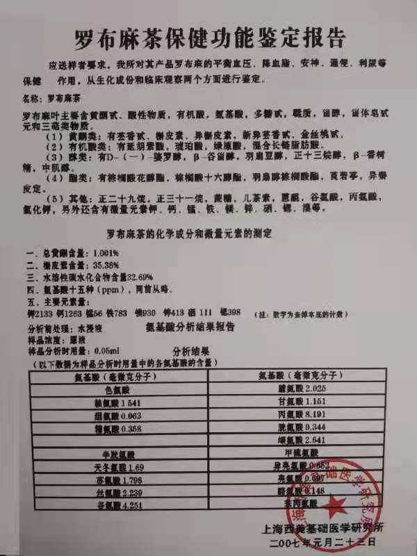 英美和日本对我国东部小红花罗布麻叶进行了深入研究,先后证实了它的相关成分及其抗脂质过氧化、保肝、抗抑郁、降血脂、抗哀老等作用,也增加了对罗布麻茶的饮用信心。