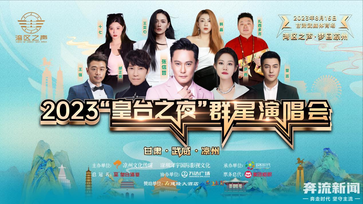 据悉,“湾区之声 梦回凉州”皇台之夜群星演唱会是由武威市凉州区文化传媒有限责任公司和泽宇(深圳)国际影视文化传媒有限公司联合主办,深圳娱悦文化发展有限公司承办,甘肃皇台酒业股份有限公司总冠名赞助。