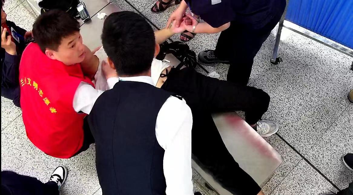 原标题:乘客突发急症晕倒在兰州地铁车厢,工作人员紧急施救