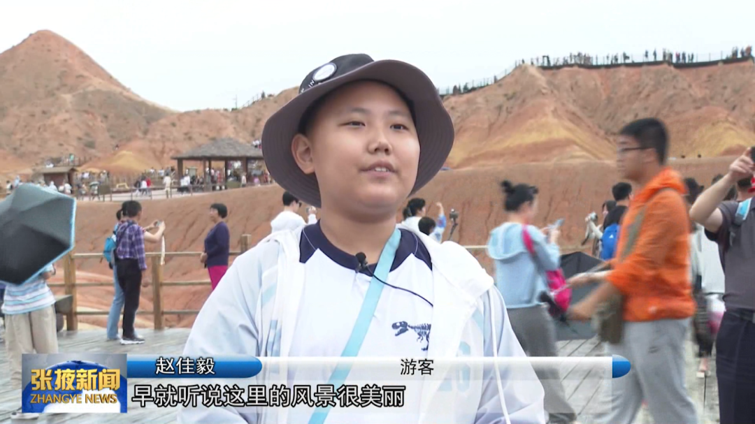 游客 赵佳毅:“早就听说这里的风景很美丽,所以今天就和我的爸爸妈妈一起过来玩,我发现这里的山和我们那里的山很不一样,这里的山有很多种的颜色,我感觉非常美丽。”