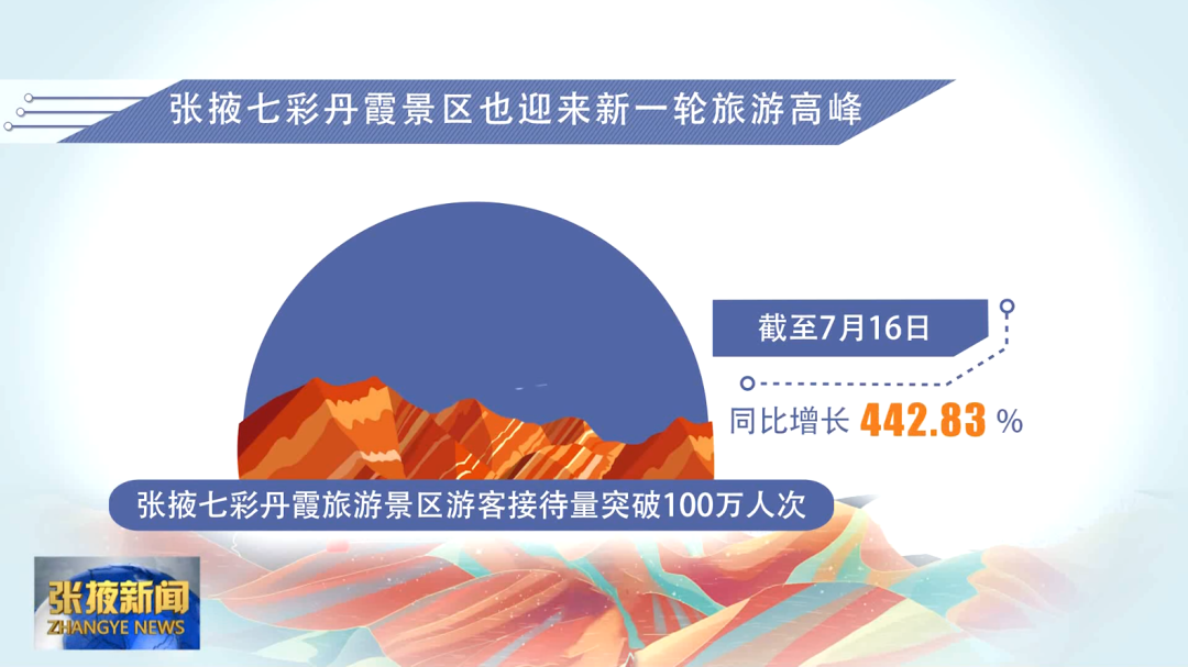 这几天,张掖七彩丹霞景区也迎来新一轮旅游高峰。截至7月16日,张掖七彩丹霞旅游景区游客接待量突破100万人次,同比增长442.83%。