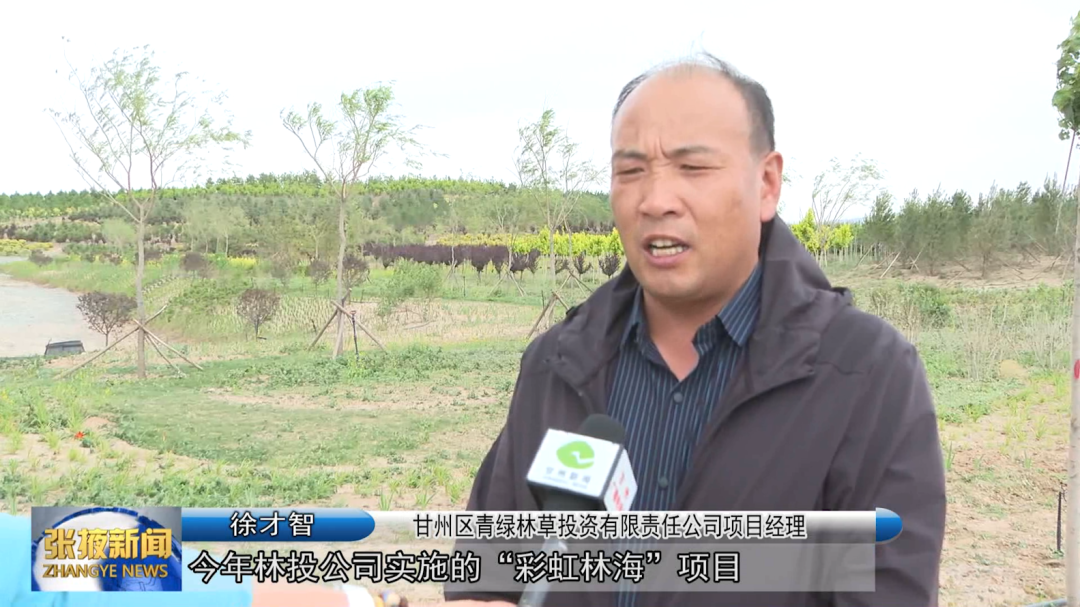 甘州区青绿林草投资有限责任公司项目经理 徐才智:“今年林投公司实施的‘彩虹林海’项目建设面积2700亩,栽植各类乔木17.5万株、灌木6万株。目前,所有工程进入养护阶段,对所有的苗木进行除草、施肥、防虫等各项工作陆续开展。”